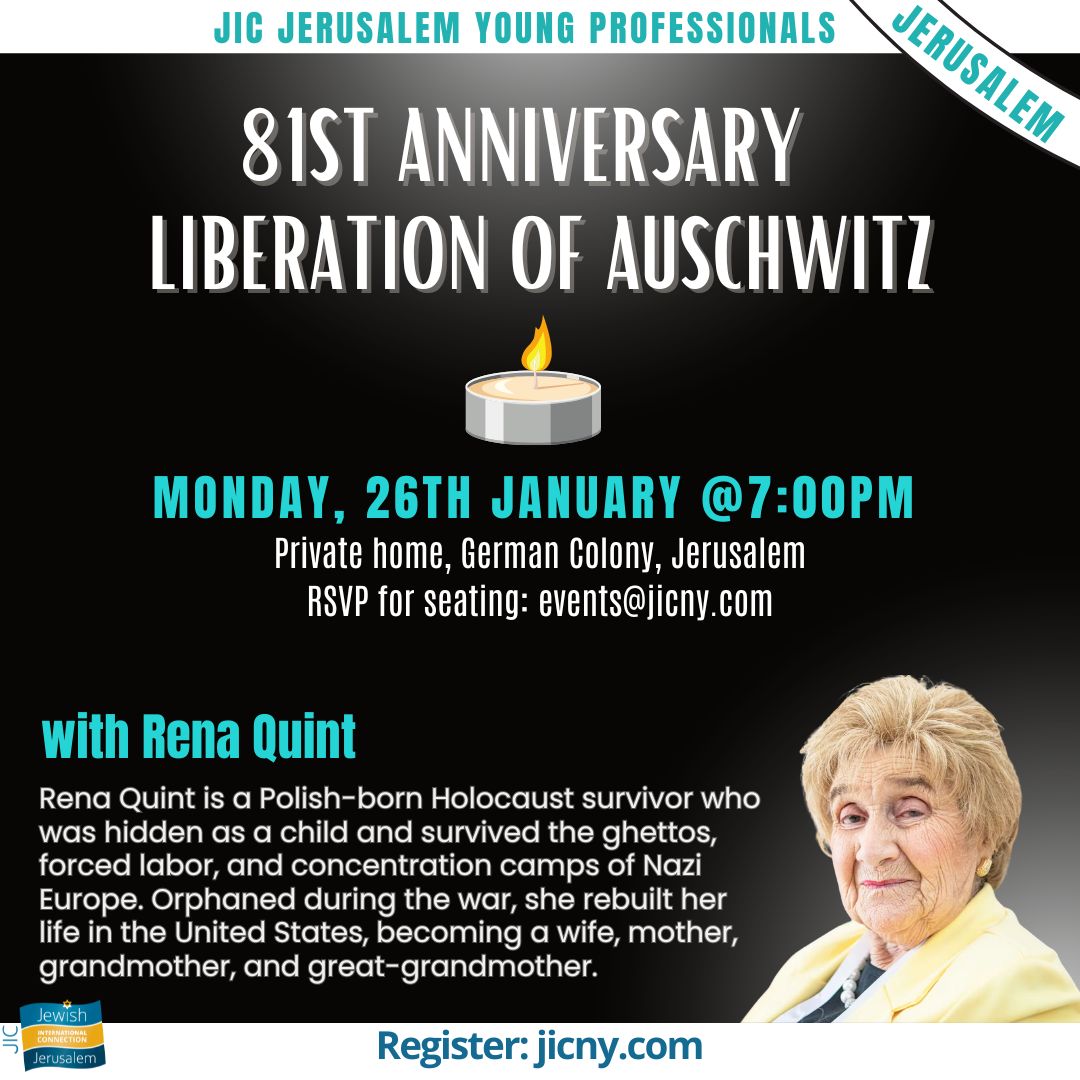 Join JIC Jerusalem Young Professionals for a meaningful evening marking the 81st Anniversary of the Liberation of Auschwitz.