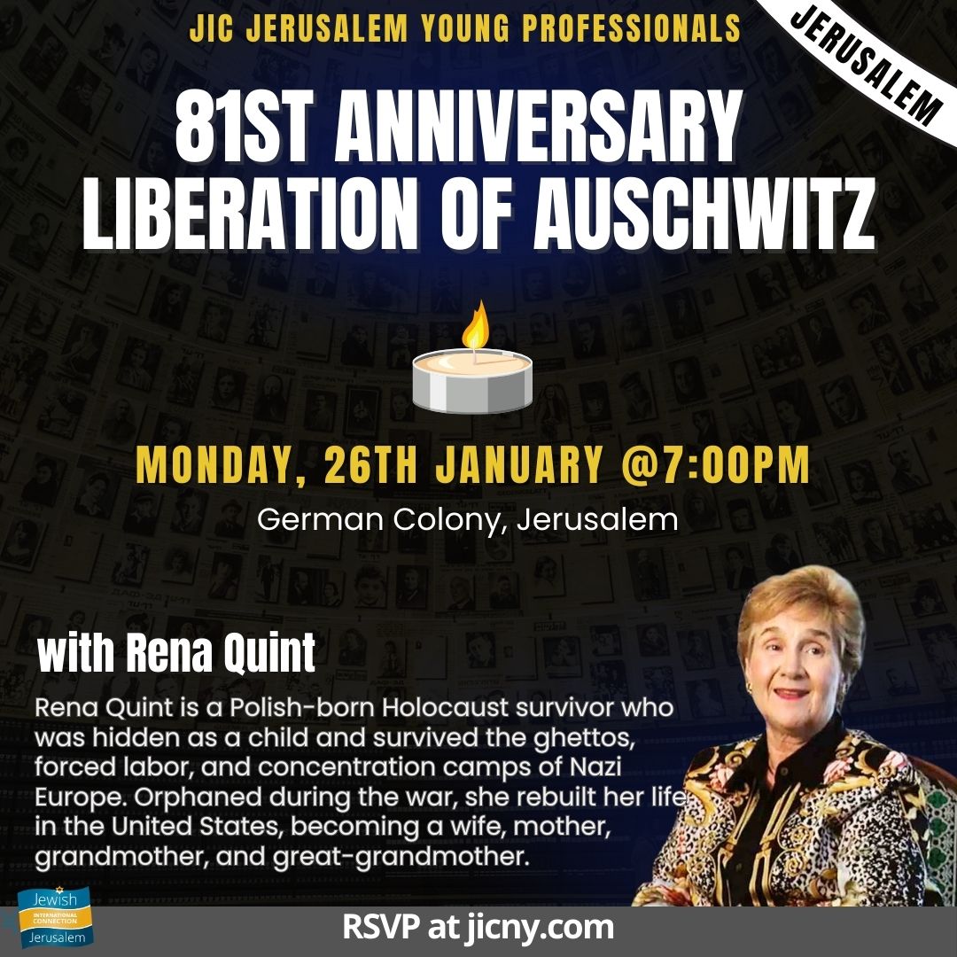 Join JIC Jerusalem Young Professionals for a meaningful evening marking the 81st Anniversary of the Liberation of Auschwitz.