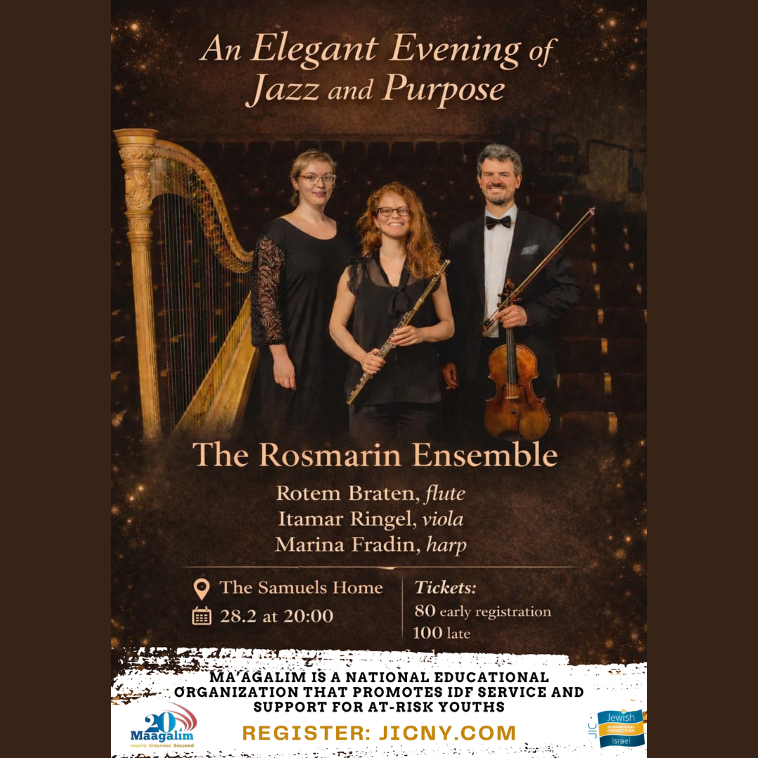 JIC Jerusalem invites you a Concert Fundraiser for Ma'agalim- Ma'agalim is a national educational organization that promotes IDF service and support for at-risk youths.
