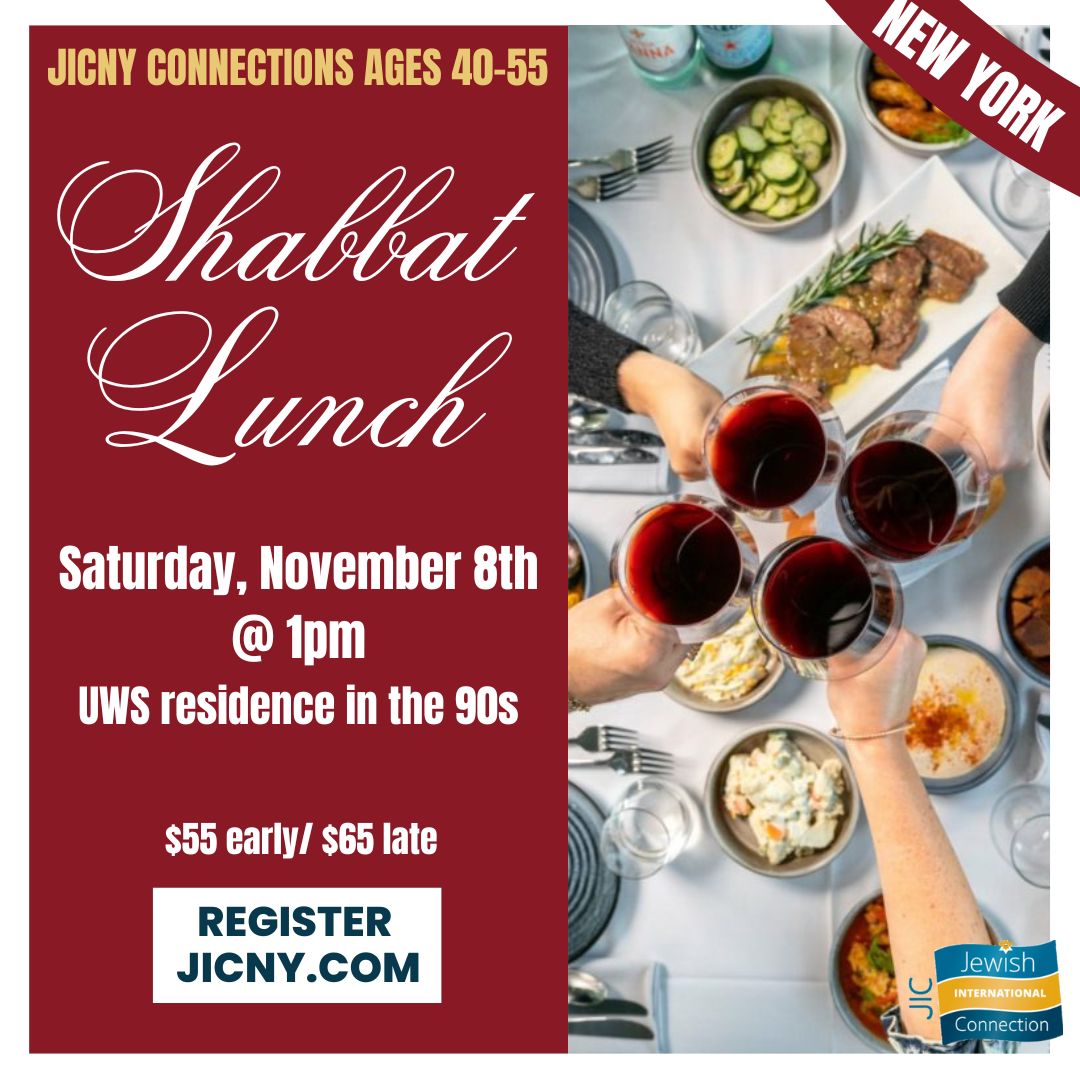 A fun boutique lunch for Jewish singles ages 40-55 in an UWS private residence in the 90s. Meet & Mingle over a delicious lunch, with great conversation, in an intimate setting.