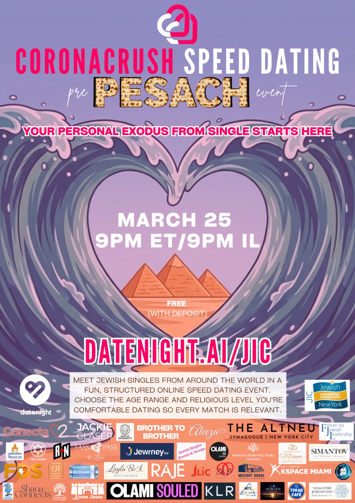 Stop wandering the desert of dating apps. Join hundreds of Jewish singles for the ultimate Pre-Pesach Speed Dating event!