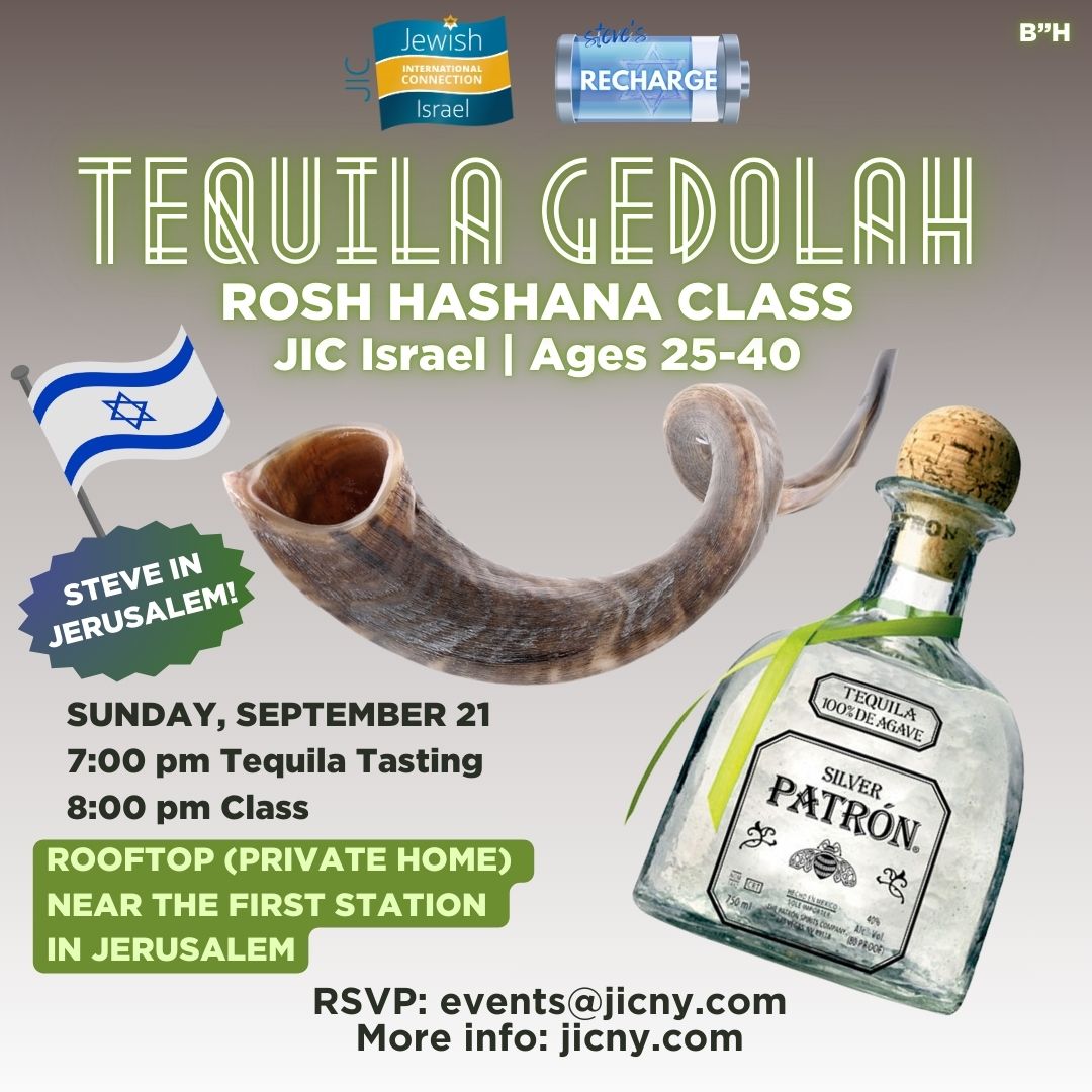 JIC Jerusalem welcomes Steve Eisenberg, JIC Co-Founder to a special Rosh Hashanah class. And tequilla tasting! For Young Jewish professionals ages 25-40.