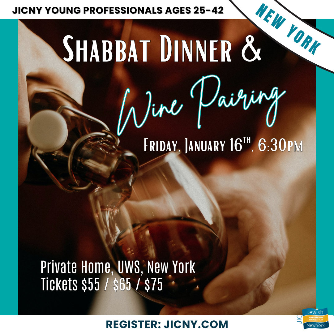 Join us for a cozy, elevated Friday night Shabbat dinner featuring a curated wine pairing, great food, and meaningful connections in an intimate home setting.
